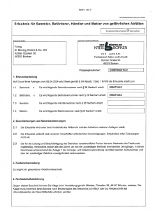 - Erlaubnis für Sammler und Beförderer von gefährlichen Abfällen nach § 54 KrWG