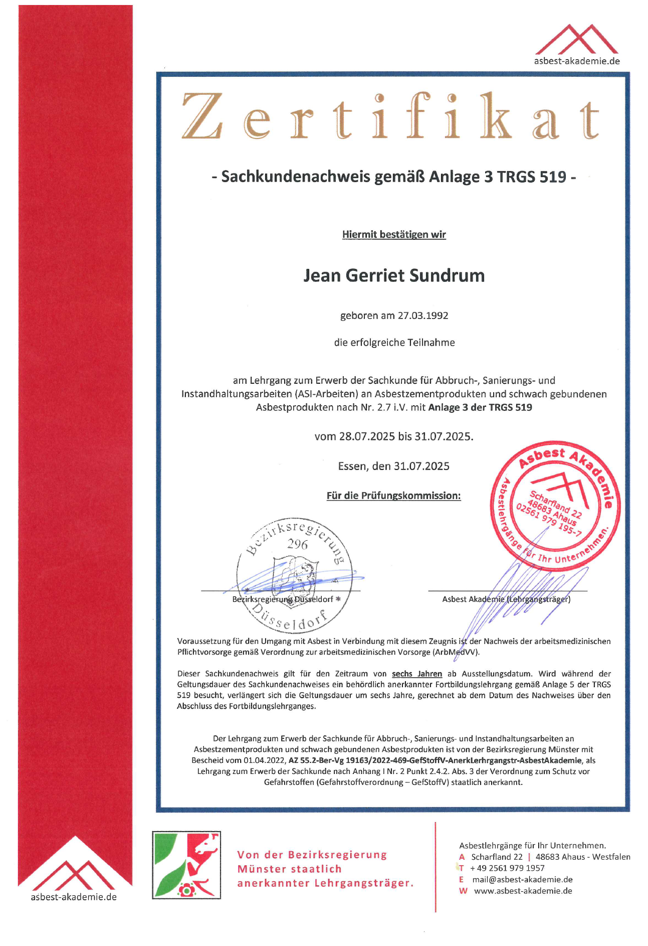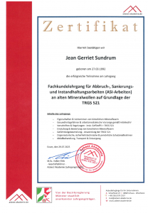 - Technische Regeln für Gefahrstoffe – Asbest – Abbruch- Sanierung und Instandhaltungsarbeiten (TRGS 519)